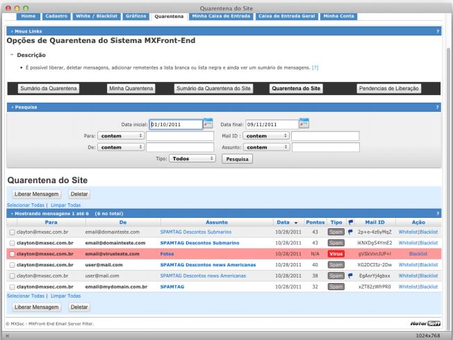 Anti Spam eficiente, Anti Vírus, contingência, Arquivamento, Regras atualizadas em portugês, Whitelist e Blacklist saiba mais...